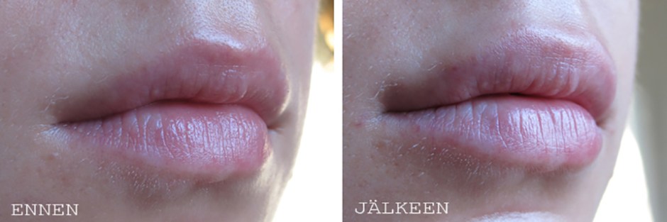 Ne jotka töissä tiesi mihin olen menossa, näki kyllä, että jotain tehty, mutta moni sanoi, että jos ei tietäisi, ei välttämättä edes huomaisi, koska mä meikkaan huulet joka tapauksessa niin huolellisesti, että ero ei ole huikean suuri. Nämä lähikuvat on tietenkin vähän extremejä ja näistä kyllä mun mielestä näkee, mutta livenä tai koko kasvokuvista se ei ole ollenkaan niin ilmiselvää.