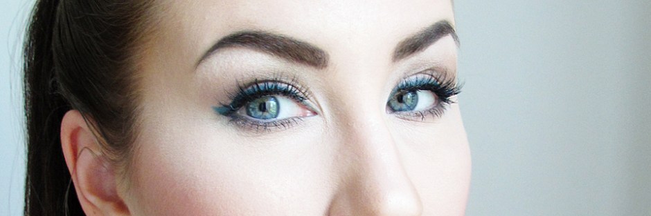Kulmat piirtelin MACin mustalla kulmakynällä. Luomiin taas UDEPP-pohjustus ja koko luomelle Chanelin vaalea shimmerinen luomiväri. Kevyet viileän harmaanruskeat varjostukset luomivaosta kulmaluuta kohti Cliniquen kahden eri kasipaletin väreillä. Turkoosi rajaus on tehty ensin Inglotin kirkkaammalla petroolilla, jota sitten tummensin sillä tummemmalla petroolilla ja ripsirajaan hieman Lauderin geelirajausta ja ripsiin Sensain 38-ripsiväriä ja tietty ripsinauhat tuomaan katyperrymäistä fiilistä.