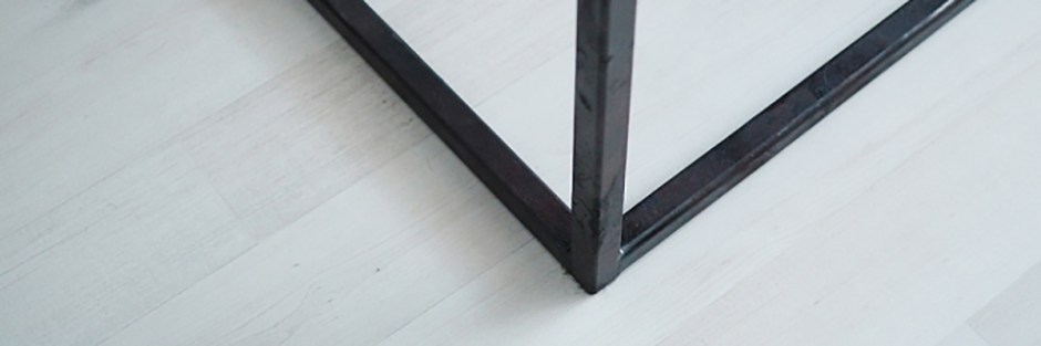 Toinen puun ja metallin liitto löytyy myös olohuoneesta, nimittäin sohvapöytä. Puutaso on meidän vanhasta sohvapöydästä, jonka mun puuseppä-isä teki mulle joskus mun opiskeluaikoina mun toiveiden pohjalta. Vanhan pöydän paksut puiset pölkkyjalat kuitenkin alkoivat ärsyttämään jossain vaiheessa ja lopulta päädyin tilaamaan tämmöisen rautaisen ja pirun painavan kehikon käsityöläiseltä puisten jalkojen tilalle ja nyt pöytä on paljon tyylikkäämpi ja sopii meidän nykyiseen tyyliin paljon paremmin.