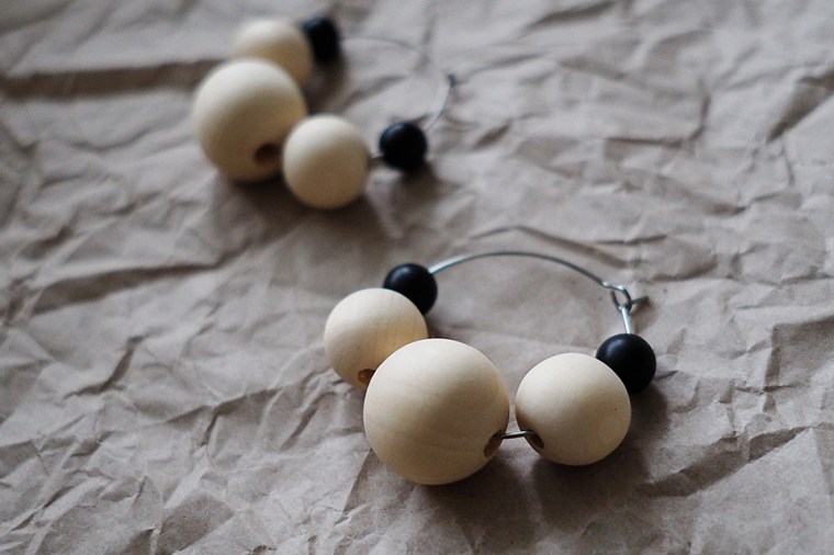 Millaisia koruja mä sitten teen? Eleettömiä, yksinkertaisia malleja ja tyylejä, jotka sopii ihan tavalliseen arkeen. Väripaletti on hyvin neutraali: luonnonvalkoista, pellavaa, mustaa ja puuta. Korujen metalliosiin valitsin ruostumattoman teräksen (kirurginteräs/stainless steel), koska sitä pidetään allergiavapaana metallina ja itse tykkään enemmän teräksen väristä kuin puhtaasta (ja vähän liian kirkkaasta) hopeasta, kullasta nyt puhumattakaan. Käytän koruihin pääasiassa lasi-, kivi- ja puuhelmiä ja makramee-lankoja.