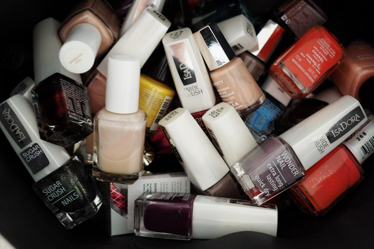 Eniten mulla on Essien* kynsilakkoja, ne on ollut mun lemppareita jo kauan ja huomasinkin, että mun oli hyvin vaikea luopua mistään Essien lakoista, vaikka tiedän ettei mulla ole käyttöä tietyille väreille tai että tykkään kuitenkin enemmän jostain toisen brändin vastaavasta sävyvivahteesta. Osa karsittavista lähti helposti, hus pois vaan, ei tarvinnut edes miettiä. Iso osa Isadoran* ja Mavalan* kynsilakoista lähti juuri tällä tavalla helposti.