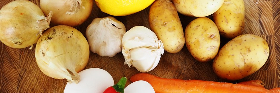 Tuorepuolelta mulla on kaapissa LÄHES aina sipulia, valkosipulia, sitruunaa, perunoita, porkkanoita, chiliä ja kananmunia. Tietenkään kaikkia näitä ei ole aina, mutta hyvin usein kuitenkin. Sipulia ja valkosipulia mulla on kyllä oikeasti aina, loput vähän vaihtelee. Pelkästään jo näistä aineksista tekis aika päheen munakkaan, esimerkiksi.