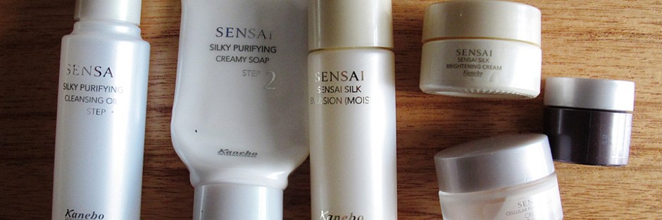 Kasvotuotteista mukaan lähti seuraavat tuotteet Sensailta: *Cleansing Oil ja *Creamy Soap, Silk Emulsion ikäänkuin seerumiksi yökäyttöön (se oli valmiiksi vajaa ja toivoin saavani sen loppuun reissulla, mutta ei tapahtunut), yövoiteeksi *CP Cream, päivävoiteeksi Brightening Cream ja silmänympärysvoiteeksi *Wrinkle Repair Eye Cream.
