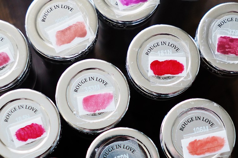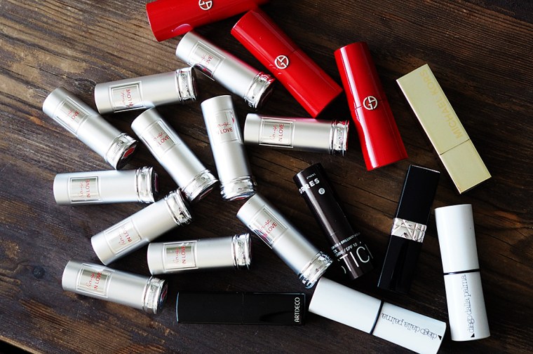 Olen noihin Lancômen puniin tehnyt tuollaiset väripalikat pohjaan, jotta mun on nopeampi löytää se väri, minkä haluan. Vaikka toisaalta, melkeinpä riittäisi, että olisi mukana vain pari neutraalimpaa sävyä ja joku vanharoosa ja ehkä yksi punainen. Suurinosa haluaa huuliinsa vain jotain kepeää ja luonnollista sävyä. Hyvin harvoin olen tehnyt punaisia tai ylipäätään mitään näyttävämpiä huulia keikoilla.