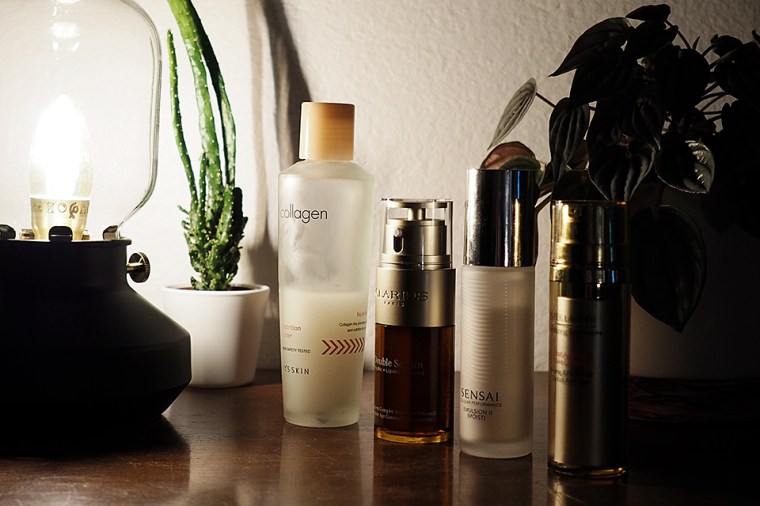 Ensimmäinen muutos oli vaihtaa täyteläisempään hoitonesteeseen. Edellinen oli selvästi vesimäisempi eikä riittänyt useammallakaan kerroksella kosteuttamaan mun ihoa tarpeeksi tämän kuivuusongelman alettua, joten kun se tyhjeni juuri sopivasti, otin tämän *It’s Skin Collagen Nutrition Toner -hoitonesteen käyttöön. Olen kerrostanut tätä yleensä kolme kerrosta päällekkäin aamuisin ennen muita hoitotuotteita ja kerrostaminen tosiaankin tuntuu olevan se avain tässä. Iho jää kerrosten jälkeen hieman kostean nahkean tuntuiseksi ja imaisee hyvin myös tämän päälle tulevat tuotteet.